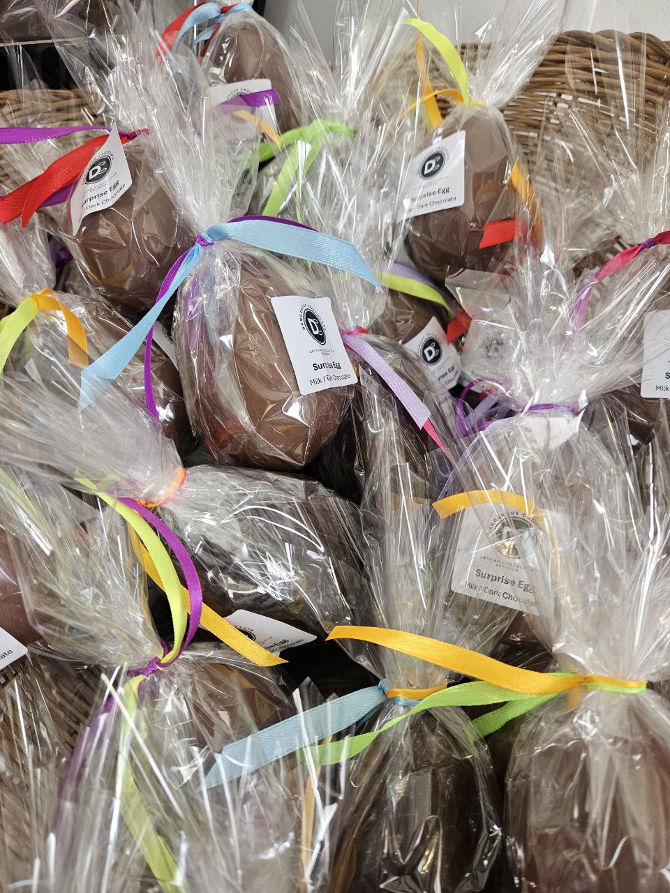 Each Surprise Egg is 8.5cm tall, around 50g, and entirely handmade by Sabine in her Rotorua chocolate kitchen using premium Callebaut couverture. They’re the kind of thing that makes someone genuinely delighted when they crack it open — whether that’s a small child or a full-grown adult who should probably know better.