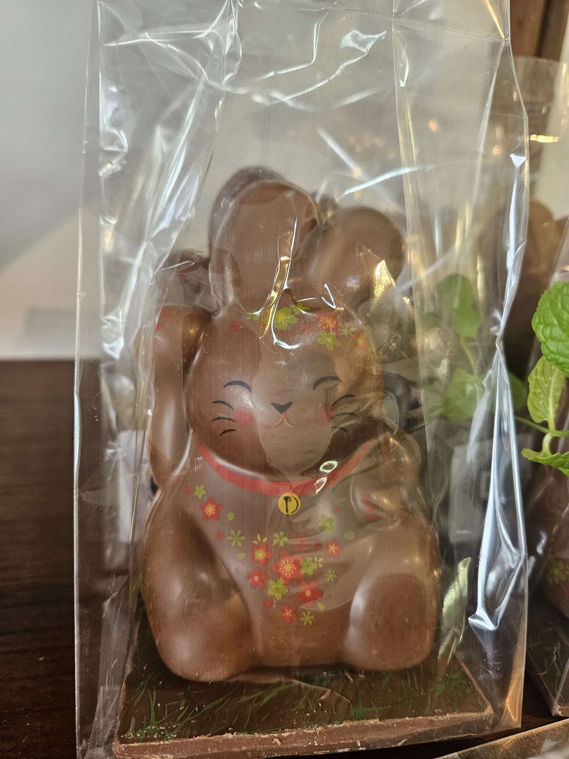 The Zen Bunny is exactly what Easter needs — a serene, solid chocolate figurine with a quietly confident energy. Hand-moulded by Sabine in creamy milk or smooth white Callebaut chocolate, this little bunny knows something you don’t.